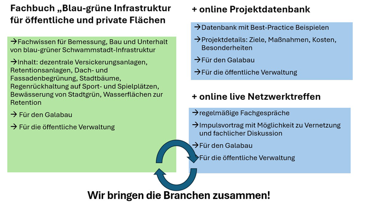 Als renommierter Fachverlag ist es uns wichtig, Wissen genau dort zu vermitteln, wo es gebraucht wird und gemeinsam mit unseren Kund:innen die Zukunft zu gestalten. Deshalb erhalten Sie beim Kauf unseres Buches Blau-grüne Infrastruktur für öffentliche und private Flächen für 3 Monate einen kostenfreien Zugang für die gleichnamige Online-Projektdatenbank sowie Ihren persönlichen Platz in unserem Netzwerktreffen, welches alle 8 Wochen stattfindet. Dort können Sie sich mit Kolleg:innen und Fachexpert:innen zu speziellen Schwammstadt-Themen austauschen und beraten.